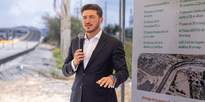Galeana, Nuevo León.– Con una inversión de 450 millones de pesos, el gobernador de Nuevo León, Samuel Alejandro García Sepúlveda, inauguró la primera etapa de la Carretera Interserrana, poniendo en operación el Puente San Roberto, una obra estratégica que promete transformar la conectividad en la región sur del estado.