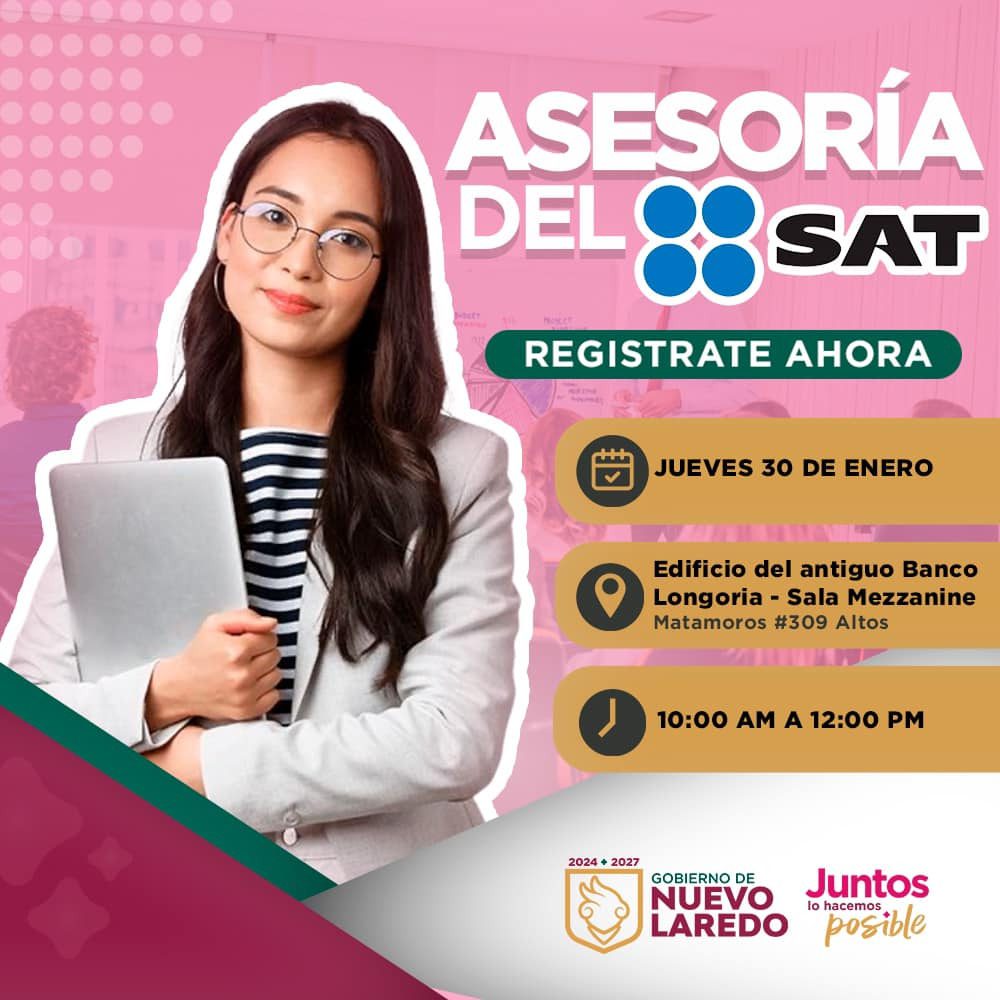 Nuevo Laredo.- El Gobierno Municipal, a través de la Secretaría de Desarrollo Económico, invita a pequeños y medianos emprendedores a participar en las asesorías que ofrecerá personal del Sistema de Administración Tributaria (SAT) el próximo jueves 30 de enero.
