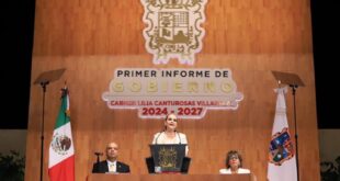 Nuevo Laredo, Tamaulipas.– Con un teatro abarrotado en el Centro Cultural y frente a autoridades de los tres órdenes de gobierno, la alcaldesa Carmen Lilia Canturosas Villarreal presentó su Primer Informe de Resultados del segundo periodo 2024-2027, destacando que la ciudad vive un momento histórico de transformación, desarrollo y bienestar compartido. La presidenta municipal subrayó que en casi cuatro años …