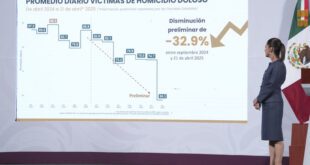 Ciudad de México. – La Estrategia Nacional de Seguridad ha comenzado a mostrar resultados contundentes: entre septiembre de 2024 y abril de 2025, el promedio diario de víctimas de homicidio doloso se redujo en un 32.9%, de acuerdo con datos preliminares del Secretariado Ejecutivo del Sistema Nacional de Seguridad Pública (SESNSP). Este avance fue destacado por la presidenta Claudia Sheinbaum …