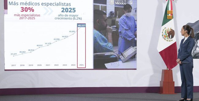 De acuerdo con cifras del director general del IMSS, Zoé Robledo, el número de médicas y médicos especialistas aumentó 30% entre 2017 y 2025, al pasar de 37,477 a 48,537 profesionales, siendo este último año el de mayor crecimiento. Sólo en el proceso de captación 2025 conocido como Draft, se sumaron 9,615 nuevos especialistas, duplicando lo logrado en 2018.