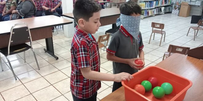 Nuevo Laredo, Tamaulipas.— Estudiantes de cuarto grado de la escuela primaria Escuela Primaria Revolución participaron en una jornada de aprendizaje y sensibilización sobre discapacidad visual durante una actividad realizada en la Biblioteca Fidel Cuéllar.