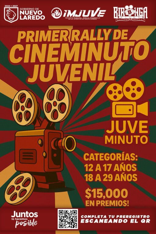 Nuevo Laredo, Tamaulipas. – Para visibilizar los desafíos que enfrenta la juventud en materia de salud mental y al mismo tiempo impulsar el talento creativo local, el Instituto Municipal para el Desarrollo de la Juventud (IMJUVE) lanzó la convocatoria al Primer Rally de Cineminuto Juvenil “Juve Minuto”.