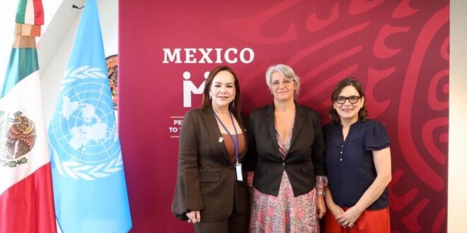 La alcaldesa sostuvo un encuentro institucional con Catarina Carvalho, directora general de Apoyo Intergubernamental, y Patricia Cortés, especialista regional para América Latina, quienes reconocieron los avances de Nuevo Laredo en políticas de igualdad de género, liderazgo femenino y desarrollo sostenible.