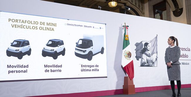 La Presidenta Claudia Sheinbaum presentó «Olinia», la primera armadora mexicana de mini vehículos eléctricos diseñados y desarrollados en el país. Este innovador proyecto busca transformar la movilidad urbana con alternativas seguras, económicas y amigables con el medio ambiente.