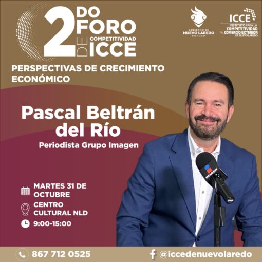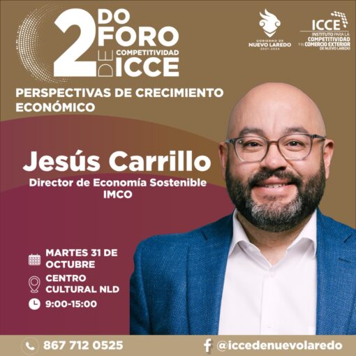 Francisco Iván Torres Macario, director general del Instituto para la Competitividad y el Comercio Exterior (ICCE) de Nuevo Laredo, informó que este importante evento tendrá como sede el Centro Cultural en donde de 9:00 AM hasta las 2:00 PM, los asistentes conocerán sobre las perspectivas de crecimiento para esta ciudad.