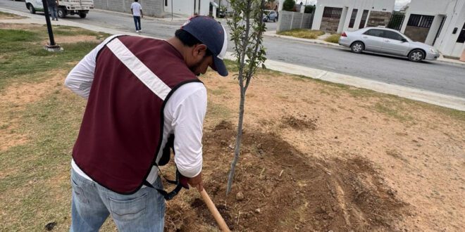 Nuevo Laredo, Tamaulipas.– Con la plantación de árboles en espacios comunitarios y deportivos, el Gobierno Municipal intensifica sus acciones para transformar el entorno urbano y fortalecer las áreas verdes de la ciudad.